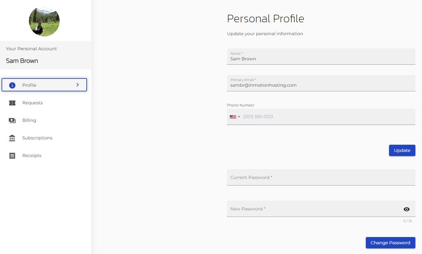 There is only room for one person on the account, so be sure to change it to the main point of contact. The primary email address is especially important. This is the email address used to log into the AMP (Account Management Panel) and will receive billing and account emails.