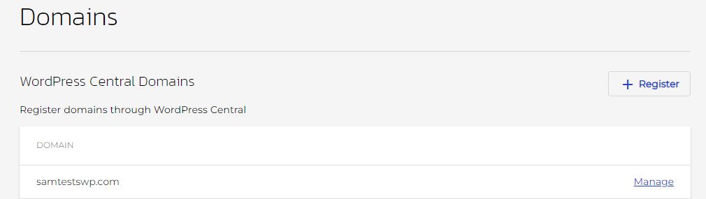 - Under the Domain Registrations section, find the domain you want to edit information for, then click the Manage button for that domain.