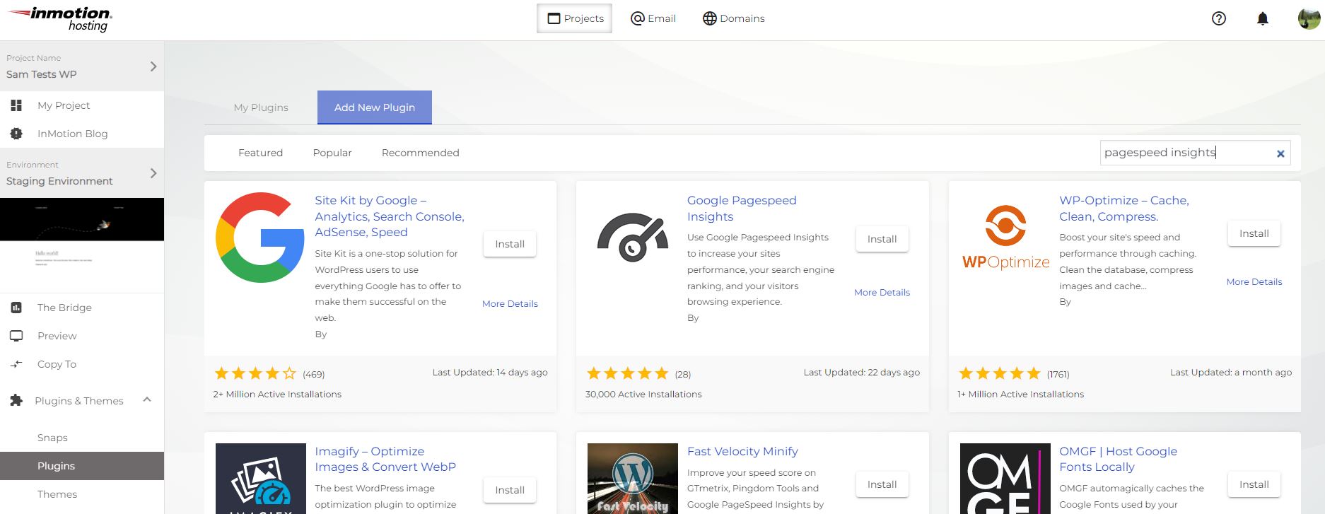 Now we will take a look at some plugins and tools to help integrate PageSpeed Insights and improve your website’s performance in InMotion Central.