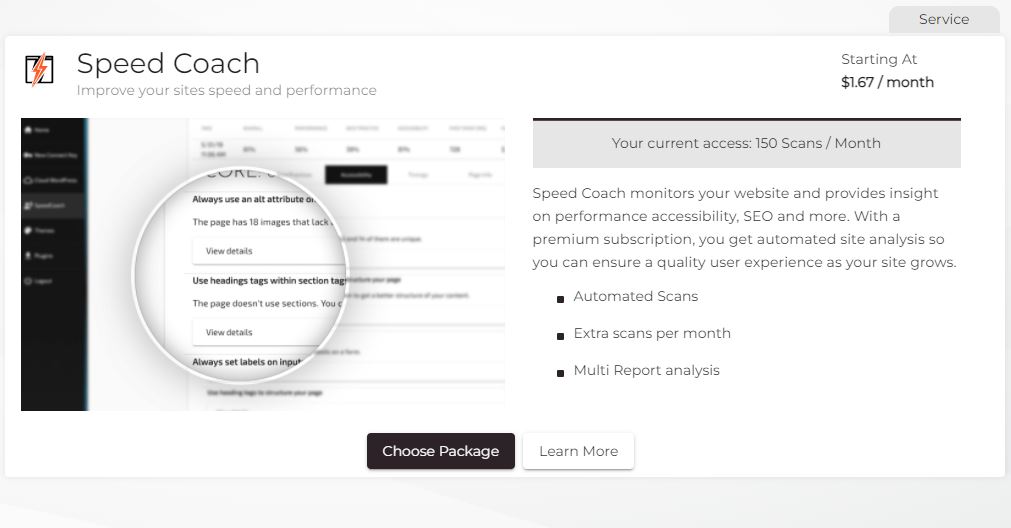 Speed Coach monitors your website and provides insight on performance, accessibility, SEO, and more.
